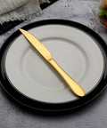 • Características del producto:  6 cuchillos para carne en acero inoxidable. Acabado galvanizado con color oro titanio, a prueba de óxido, alta dureza, sin plomo, sin cadmio, sin ftalatos, sin BPA, duradero y respetuoso con el medio ambiente.