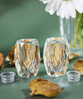 - Características del producto: Hecho en cristal K9 de alta calidad. Tamaño: 4.5×3.3 cms (1.8″x1.3″) por juego. No apto para lavavajillas ni microondas.